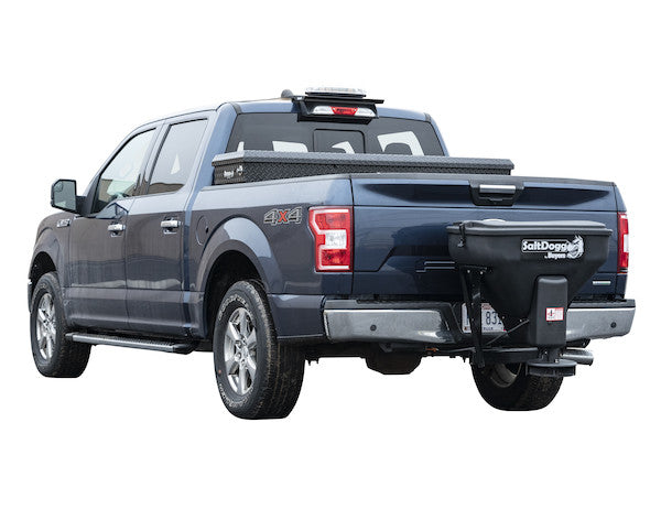 The SaltDogg TGS02 4 Cubic Foot Tailgate Spreader is ideal for residential and light commercial applications using ice melt and bagged salt and works with 1/2 ton, 3/4 ton, and 1 ton trucks. It features a horizontal auger feed that keeps the material moving. The spreader has a low-profile 4 cubic foot poly hopper that holds up to 296 lb of material and mounts to a 2 in. Class 4 receiver. The spreader operates a nine inch poly spinner and can cast material up to 30 ft. Its 1/3 HP, 12V dual shaft gear motor is controlled by an included variable speed in-cab controller.